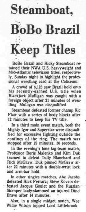 Note: Greg Valentine wins his