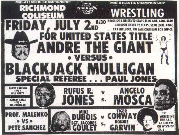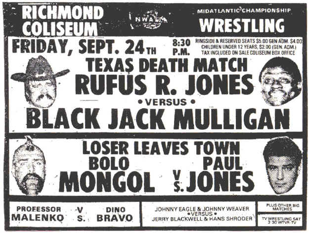 Jones d. Angelo Mosca (Jones retains Mid-Atlantic TV Title)