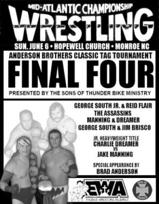 Father and son tag team George South and George South, Jr. were tournament winners of ABC3 in 2008 in Charlotte. In ABC4, both men took different partners for the tournament, South Sr. taking the masked Mr. Florida, and South Jr. teaming up with Reid Flair, the son of former 16 time world champion "Nature Boy" Ric Flair.