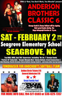 Brad and Carter Anderson with special trophy presenter Jimmy Valiant Anderson Brothers Classic (ABC6) Tournament Champions
