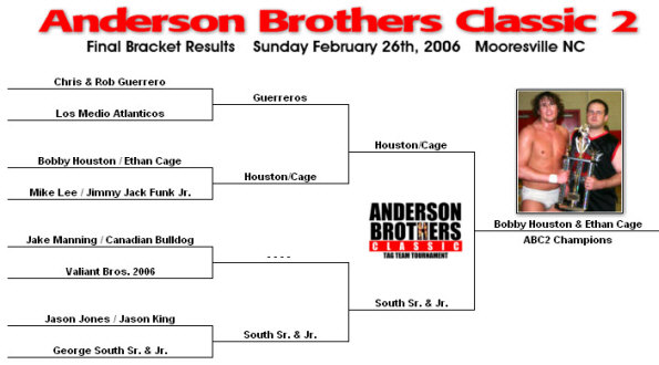 ABC1: George South & Brad Anderson ABC2: Bobby Houston & Ethan Cage ABC3: George South & George South Jr. ABC4: Reid Flair & George South Jr. ABC5: Rock & Roll Express (Robert Gibson and Ricky Morton) ABC6: Brad and Carter Anderson ABC7: George South & Tessa Blanchard