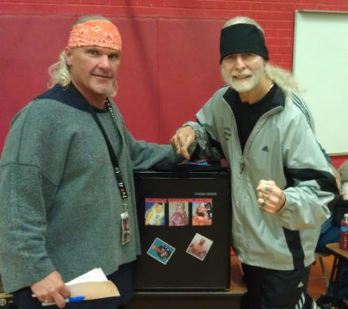 George South & Jimmy Valiant with the "Boogie Woogie Babydoll Rock & Roll Refrigerator" given away at the Seagrove Supershow!