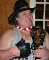 So that brings us to the most improbable turn of events that took place the next night. What led to Blackjack Mulligan being involved to begin with was the sponsorship of the tournament on 9/15 by his Main Street Auto Sales in nearby Mascotte FL. Mulligan had put up a Chevy Suburban to be awarded to the tournament winner, in addition to the prized Florida heavyweight title belt. The next night at the new champion's press conference, Blackjack awarded the keys to the Suburban to Mr. Florida, but the proceedings turned sour when Mr. Florida made a snide reference to Mulligan being "washed up." Mulligan naturally took exception to the remark and said he thought he had just enough in the tank for one more big push if Mr. Florida wanted to accept the challenge. Florida responded by saying he'd whip Mulligan on the spot! Commissioner Joe Graham, so excited about the prospects of having Blackjack Mulligan involved in an EWA sanctioned match, decreed that if both men agreed, the match could be fought under WWE-style 24/7 Hardcore rules, meaning the title could be defended and a man could be pinned anywhere and at anytime the two were able to get together. Mr. Florida popped off, "Fine by me!" No sooner than the words were out of his mouth, Mulligan slapped on his famous claw hold and in less than an Eagle pass minute, Mr. Florida was out! Under terms of the 24/7 hardcore rules, Blackjack Mulligan had just won the EWA Florida Heavyweight Championship!