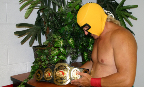 Back in April 2008, Mr. Florida is photographed admiring his newly won Florida Heavyweight championship belt following an exhausting tournament in Tampa.