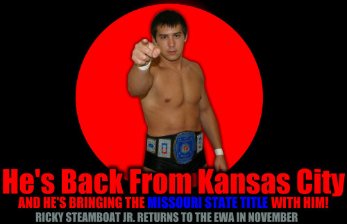 RICKY STEAMBOAT JR. EWA Missouri Heavyweight Champion Steamboat is currently wrestling in Puerto Rico and Japan EWA Missouri rules allow for a champion to go for any amount of time without defending his title with approval from the St. Louis Wrestling office and the EWA commissioner's office. Steamboat received approval from both on Jan. 6, 2009. As of 2011, he is wrestling in Florida for WWE Championship Wrestling from Florida and is one-half of the Florida Tag Team Champions.