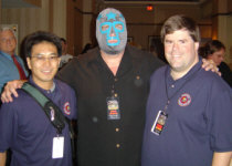 Akihiro Iwata, Masked Superstar (Bill Eadie), and Dick Bourne; Clay