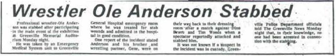 Professional wrestler Ole Anderson was stabbed after